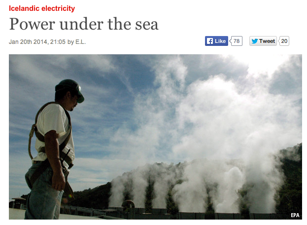 The Economist goes on by pointing out that the attraction of the IcLink for Britain is flexibility. The increasing dependence on wind energy, which produced a record ten percent of Britain’s power in last December (2013), may be questionable from an economic point of view. And it creates a technical difficulty too: if the wind drops, you need a speedy alternative source of power. When it blows strongly, you need somewhere to store it. Iceland’s stable geothermal- and hydro-electric generation is ideal for both purposes. But Britain has rather little hydro and close to none geothermal.