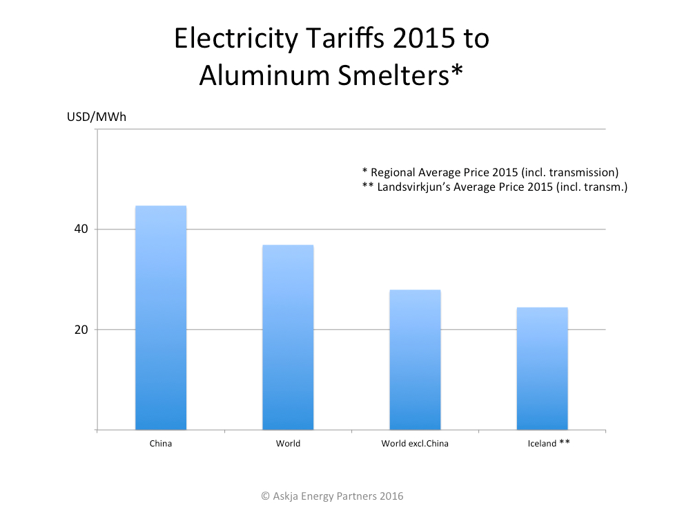 Power tariffs to aluminum smelters in Iceland are among the lowest in the world.